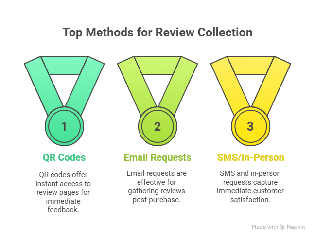 For brick-and-mortar businesses, small signs at checkout with QR codes make review submission effortless. Customers can scan and leave feedback in seconds, often yielding higher conversion rates than delayed requests.