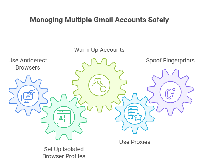 Managing multiple Gmail accounts efficiently requires specialized tools and techniques to prevent bans and suspensions. Given the risks associated with buying old Gmail accounts, creating a proper management system offers a safer alternative for most use cases.